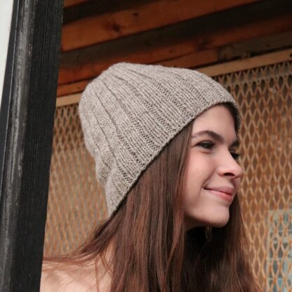 A simple brim up hat, with ribbing all the way up, decreases makes X to give the top of the hat rounded and interesting crown.