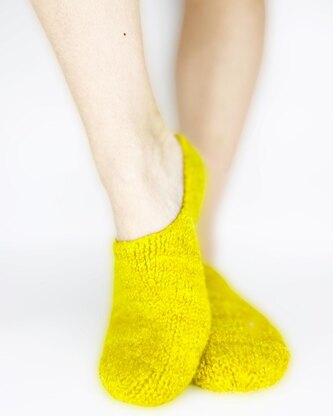 These slippers are worked flat from heel flap until extra stitches are cast on and joined in the round at the instep. The slipper is worked in the round until finishing with decreases for the toe. After knitting is complete, they are felted to the desired finished size.