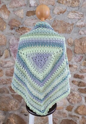 This unique shawl is worked from the center while still achieving a nice triangle shape that is longer across the top than the sides. I would have loved a pattern like this when I was learning to crochet. I hope you will love it too! It uses simple stitches in a repeating pattern to achieve a lacy shawl that is perfect for warmer weather. Looks great in self striping cake yarn or solid color yarn.
