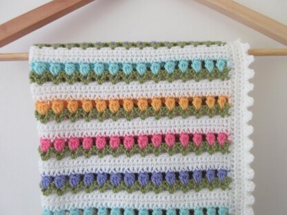 With this pattern you can make this beautiful crocheted blanket with rows of pretty tulips and a picot edging! The pattern is written using US crochet terms and assumes a basic knowlegde of crochet.
