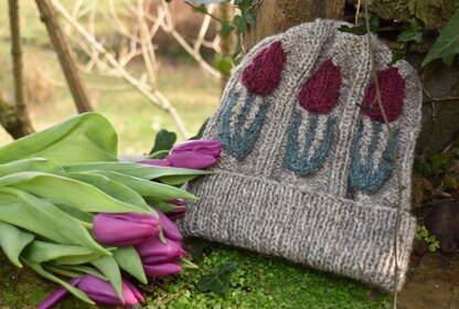 I am really happy with my new knitting design. It is a really practical, cosy hat, but also pretty and quite unique. Working on the tulip motif took me some time, and I have ideas for some other patterns where I will use it.