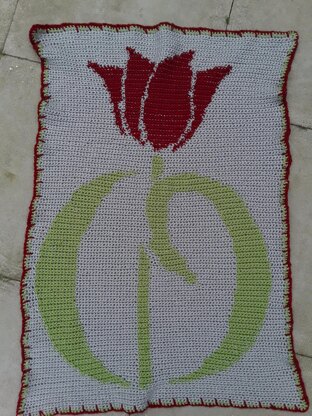 This delightful blanket uses the stylised tulip as it's motif. Made using Stylecraft aran wool, single crochet and spike stitch. The motif is the emblem for Parkinsons week.