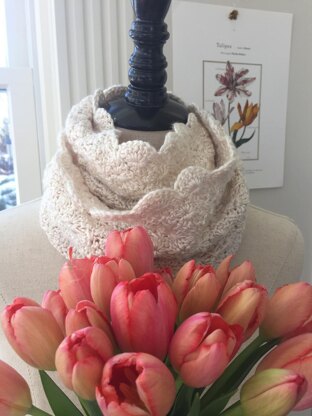 The cowl is crocheted in the round and written for three different weights of yarn: Lace, Fingering and DK/Sport. There is a short version, and a long version which can be wrapped once around the neck as a double scarf. It can also include a twist for a lovely fold either in the front, back, or on the side. Instructions are in U.S. terminology and there is a video tutorial of the DC6TOG stitch that is used. The pattern has been test knitted and tech edited.