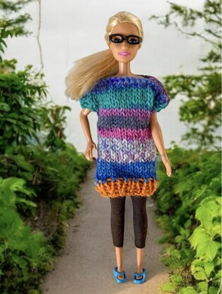 This is a PDF download knitting pattern for a teenage fashion doll such as Barbie or Sindy.