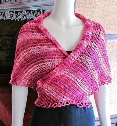 It's also a no-stress way to use up stash yarns because the edging is worked as you go, and you begin the decrease rows when you've used half of your yarn. Less yarn than the pattern calls for results in a scarf instead of a wrap.