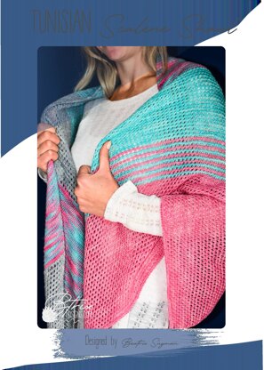 This shawl is worked in sections of an eyelet stitch pattern and sections of Tunisian Top Bar Stitch. The shawl is worked from the longest point and then worked with increases to create a scalene triangle.