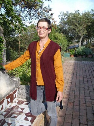 The waistcoat in DK-weight wool takes part of the set Tusa but it is very beautiful and useful alone with a jumper, a shirt, slacks or a skirt. Worked flat from right front opening across the back to left front opening. The pattern consists of columns and "squares" in stocking st and moss st from chart. It is recommended to use circular needles as there is quite a large number of stitches.