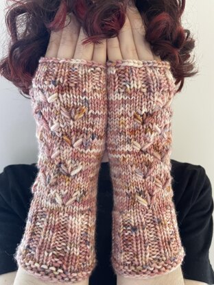 The Tussock fingerless mittens are quick and easy-to-knit and a great way to show off a single skein variegated, hand-dyed DK weight (8ply) yarn. They feature a pretty looped stitch that resembles a tussock of grass, and 2 x 2 ribbing on all edges for a firm fit.