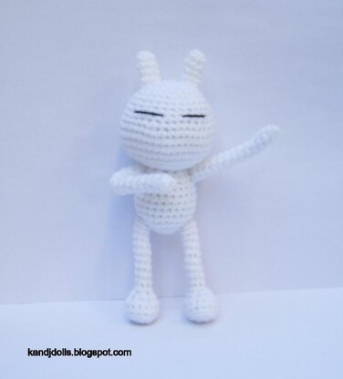 The pattern for Tuzki is written in English (using US crochet terms). It is 5 pages long of which half are pictures: 13 photos help you make Tuzki with every step. It is a very easy pattern.