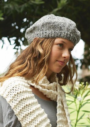 A classic Stocking stitch beret with a ribbed band.