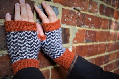 These gorgeous handwarmers are eye catching with their beautiful herringbone tweed inspired fairisle.