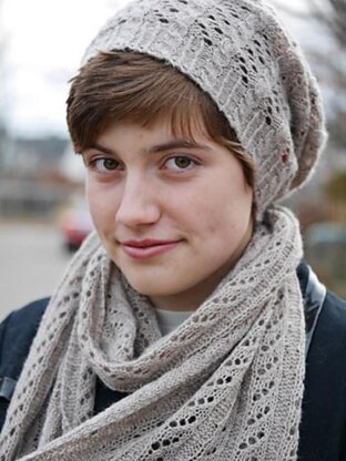 his lightweight cap in three sizes (small/medium/large), features a reversible vertical lace and cable motif, allowing it to be worn long and slouchy or with a rolled or folded brim. Delicate and airy, it will tame hair on temperate but windy days; the openwork pattern shows off the halo of a fine luxury yarn, while still providing a surprising amount of warmth. The easy to knit pattern, worked entirely in the round makes an excellent first lace or cable project and a very portable knit to keep or give as a gift. Substituting yarn and/or needles may result in an overall variation in size and drape.