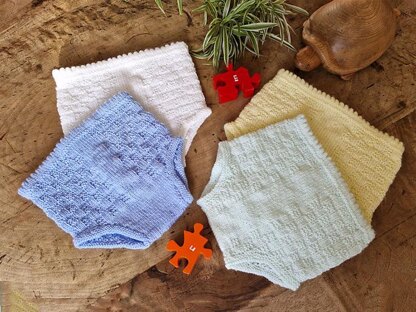 By popular request - baby knickers with no crochet requirement! Worked mainly in the round and with clear instructions, these cute knickers will be the wardrobe "go-to", especially when only a nappy is the order of the day......