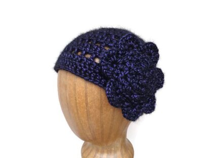 This fashionable beanie with an accent flower is a cute statement piece in a shimmering yarn. Wear it on girls night out or just to make your day more special!