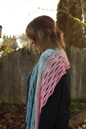 It is worked flat and combines two wave stitch patterns to create this delicate wrap.
