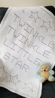 This cute star blanket with the words of the children's poem "Twinkle Twinkle Little Star" is a beautiful gift for a newborn or young baby. The pattern is very easy for beginners as there are no unusual or difficult stitches to master. The pattern contains written instructions with full stitch counts for every row, as well as a complete crochet chart.