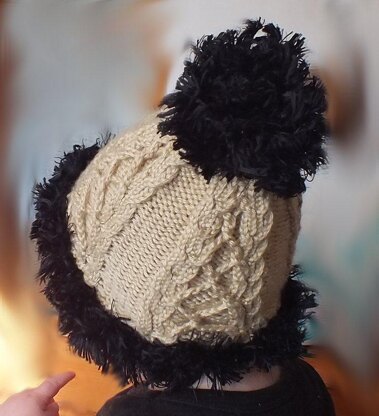 I used the Cindwood 3/8" gauge 72 peg loom to show how to make this project but used a chart to show how you can make this on major brand hat looms to make this hat. I have video for the 8 stitch cable set and photo for the 4 stitch cable set. There is detailed instructions and multiple ways to understand what is going on with this pattern. This pattern uses an I-cord to achieve the vine section so you may want to loom it or crochet a cord. Didn't use much when it comes to the simple soft caron yarn. I also used red heart fur on the brim and pom pom. This is optional and I did not show instructions for it. You may choose to use another yarn to make a fur brim. This part is open to your creativity. I would say this is an intermediate/advanced pattern.