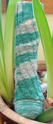 A very simple toe up sock that has no heel. It's a tube that twists around and around making a great fit for all sizes and types of feet. Makes great use of a multiple colorway or gradient yarn.