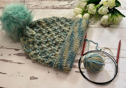 this hat is knitted in the round, on the right side only, in one piece, seamless