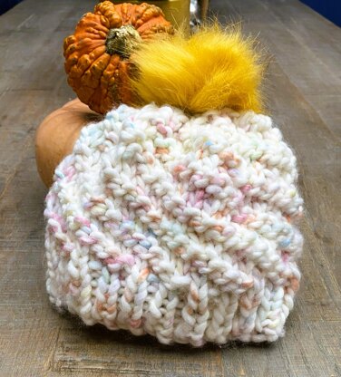 This beginner friendly adult beanie is made with an easy stitch combination to create a lovely squishy hat with a textured twist. It has a snug, fitted style, although you can add extra rows here and there to make a slouchier hat.