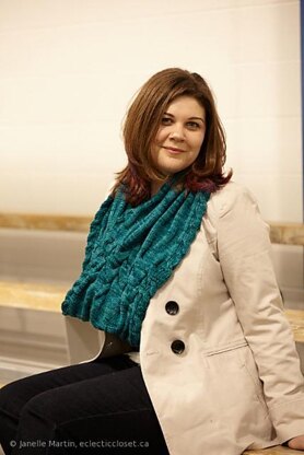 The cowl begins with a provisional cast on and is knit back and forth. The piece is finished by grafting the two ends together.