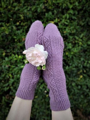 The Twisted Flow Socks combine the best of both worlds: intricacy and simplicity. Beautiful twisted stitches flow up both sides of the foot like small streams, surrounded by relaxing stockinette on toe, sole and heel and a simple knit-purl-stitch on the instep. The combination of these stitches make it an interesting, but not too difficult knit.