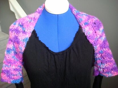 Fun and funky. This shoulder wrap adds warmth and spice to any dreary gray winter day. Made for Marlene, one of the Twisted Sisters for Knit City Vancouver 2017. Colour, colour, colour and an exquisitely soft alpaca lopi from their herd (Pokémon). The pattern gives a faux cabling appearance with air vents or eyelets running horizontally. Can be worn as a shoulder wrap as well as a cowl by tucking one sleeve into the other.