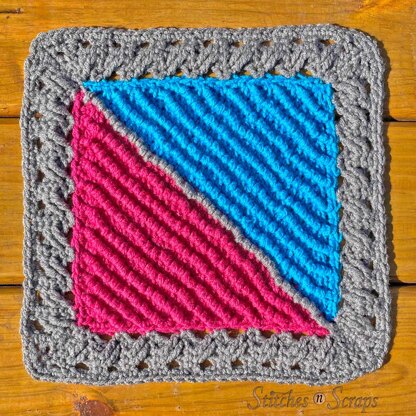 Forwards, backwards, and round and round – work around this 12 inch crochet square in all different directions! The bold color blocking and rich texture are an eye catching addition to any decor. With lots of twists and turns in the pattern, it’s fun to make too!