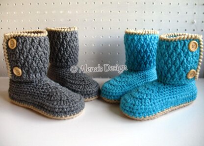 Includes PATTERN for the Two-Button Children's Booties in five sizes: