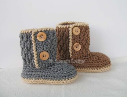 Includes PATTERN for the Two-Button Toddler Booties in four sizes: