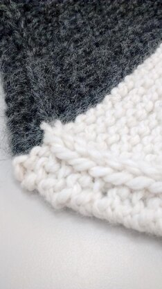 Skill Level Easy Finished Measurements 46 inches wide x 11¼ inches deep at deepest point Materials Cascade Yarns Baby Alpaca Chunky (chunky weight; 100% alpaca; 108 yds/100g per ball): 1 ball ecru #565 (A) Plymouth Yarn Baby Alpaca Brush (chunky weight; 80% baby alpaca/20% acrylic; 110 yds/50g per ball): 1 ball grey #0402 (B) Needles Size 9 (5.5mm) needles or size needed to obtain gauge Gauge 15 sts and 29 rows = 4 inches/10cm in garter st. To save time, take time to check gauge.