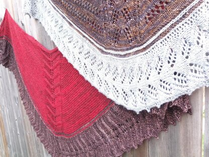 Two Roads is inspired by Robert Frost's poem The Road Not Taken and features Zen Yarn Garden's stunning Serenity Silk Single yarn. Each step offers choices to make your shawl one of a kind and that makes all the difference in creating an accessory you will love to knit and really enjoy wearing!