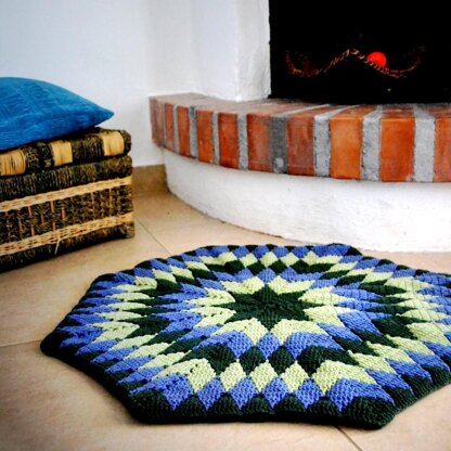 Two Stars is a cozy crocheted rug that, due to the thickness of two layers, will feel luxurious under your feet. This project will light up your room with a splash of color and a bold eye-catching diamond pattern with a star motif inside.