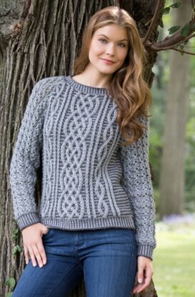 Two-Tone Cable Sweater in Red Heart Soft Solids - LW3991