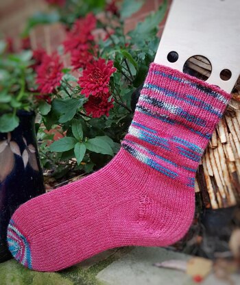 Construction: The construction is a toe up sock with a gusset and slip stitch heel end mid calf.