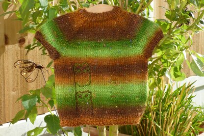 A knitting pattern to knit a seamless top down top, sweater, for babies and children to age 7. Tylluan is a raglan yoke pattern knitted from the top down with a lovely square neck, back button fastener, and an owl cable insert. Instructions 6 sizes are given from 0-6mths to 6 -7yrs, and it is suitable for girls and boys. It is a great coverup for spring and summer days when you need a light extra layer - make it in cotton for warmer days and wool for cooler days.
