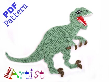 The pattern provides instructions to make a cute crochet applique that can be used in inumerable ways...decorate and personalize your favorite objects like hats, t-shirts, bags, school knap-sacks and lots of other stuff you can think of. The Trex measures about 5 in. in height by 5 in. wide but the size can be varied by using thinner or thicker yarn and types of hook. Colors can be changed according to your personal preference. The pattern is designed for worsted weight yarn and uses American English crochet terms. This crochet pattern is available for Instant Download. Once your payment is received, you will get an email with the download link and details of your order. In case of problems feel free to contact me anytime.