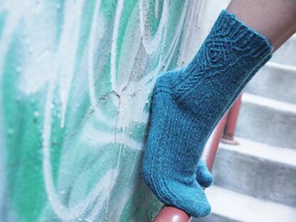 Construction Notes Top down socks with standard heel flaps. The cables are worked with one strand of twisted stitches for added textural depth. Try cabling without a cable needle to make the knitting go more smoothly and quickly.