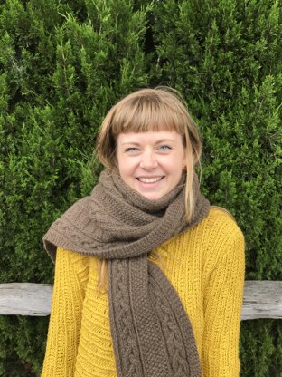 This is a textured, reversible, unisex scarf featuring an interesting cable pattern that looks completely different on the wrong side.