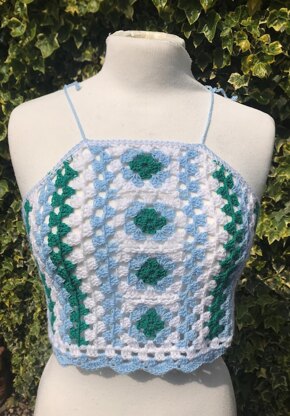 This pattern is written using US crochet terms. Each square is joined as you go, so there's no seaming up afterwards. I used scraps to make this top, so the yarn amounts given are the total yarn used.