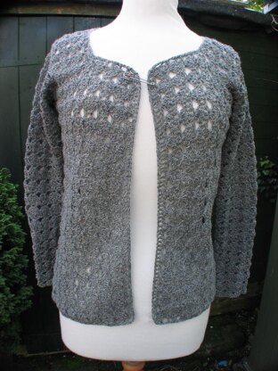 To fit 34"/85cm, actual size 36.8"/92cm. Length from shoulder, 20.9"/52.25cm. Sleeve length, 17.5"/43.75cm. This pattern is written in American crochet terms. You start at the centre back and work out towards each sleeve. The pattern has notes/guidelines for adjusting the fit or sizing it up or down.