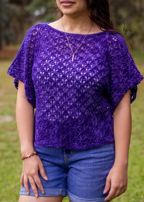 This size-inclusive women's tee is knit in a simple lace stitch with no shaping! Knit your own with this PDF knitting pattern & video tutorial.