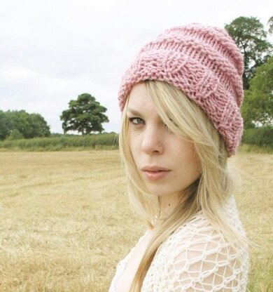 A very quick pattern. You could have this hat in a couple of hours. Beautiful and springy when done, wear it slouchy or fold the brim over for a beanie look.