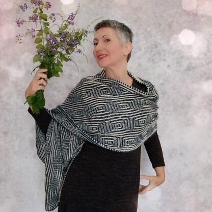 Unconscious Inference is a part of a theory of visual perception that implies that human vision is incomplete and that details are inferred by the unconscious mind to create a complete picture. Optical illusions are the most obvious instances of unconscious inference. It is possible to create some beautiful geometric optical illusions with knitting (especially the combination of brioche with garter stitch), obtaining a luscious and warm wrap fascinating the eye and the mind. This wrap is worked using a laceweight yarn, that is used plain in the two ends (at the beginning and the end of the piece), giving an airy and translucent appearance to these parts and a more elegant drape to the entire stole. The center part, on the contrary, is worked with yarn held doubled, adding warmth and weight to the piece and making the illusion design more evident.
