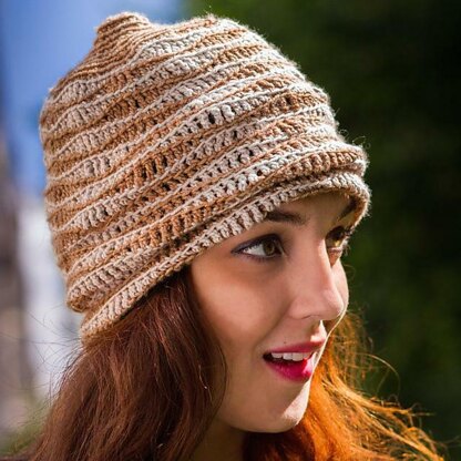 This slouchy hat can be worn lots of ways. Worked bottom up in two colors, with colors carried on the inside, so no cutting of yarn. This wavy stitch is one of my favorites!