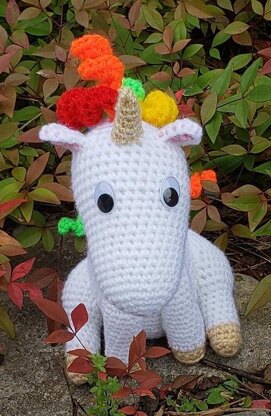 Finished unicorn measures approximately 8” tall (feet to top of horn), 4" wide, and 7” long (nose to tail)