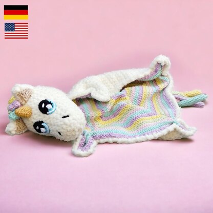 The finished unicorn will be about 40cm. Of course, the size can vary depending on whether you crochet tight or loose. The choice of wool is also important. I crochet with cotton yarn 4ply 125m/50g (100% cotton) and chenille wool 120m/100g.