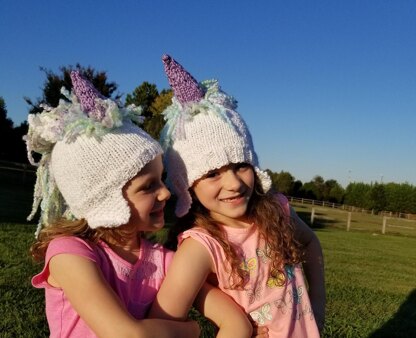 This pattern is a quick knit and the hat is perfect for dress up, costumes, or as a toasty warm winter hat! The hat itself is worked flat, with a seam that will be covered up by the mane--in other words, it doesn't have to look pretty! The horn and ears are worked separately and sewn to the finished hat. The mane (a great stash buster!) is attached at the end.