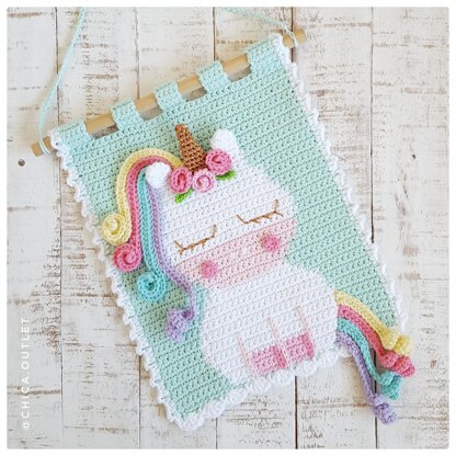 In this PDF pattern you will find detailed instructions on how to crochet an unicorn wall hanging. Includes a detailed description, graphics, and step-by-step photo tutorial to make your own deco.