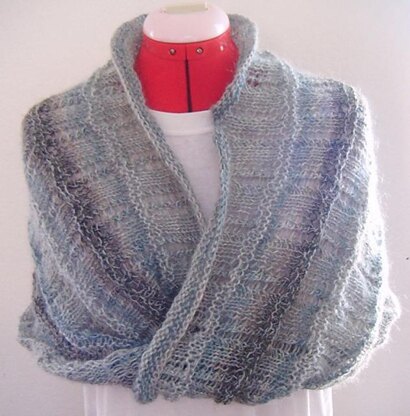 It is a one piece, knit in the round infinity scarf. I tried not to twist it when I joined in the round. But it is not meant to be. I got 2 twists unintentionally. You can turn it into a cowl or just scarf. Any yarn and colour will be great for it. Gauge is unimportant.